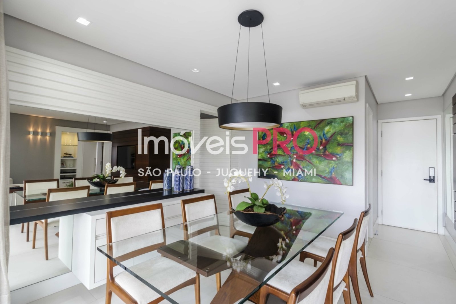 Possui móveis planejados de alta qualidade, ar condicionado em todos os ambientes, sala integrada com varanda gourmet e churrasqueira também integrada a cozinha, lavabo, cozinha repleta de armários, área de serviço completa com despensa, são 2 vagas de garagem + depósito privativo.