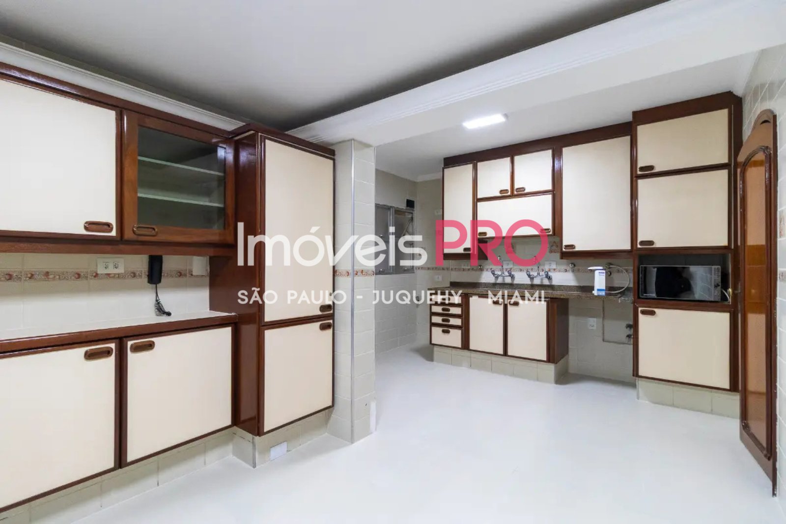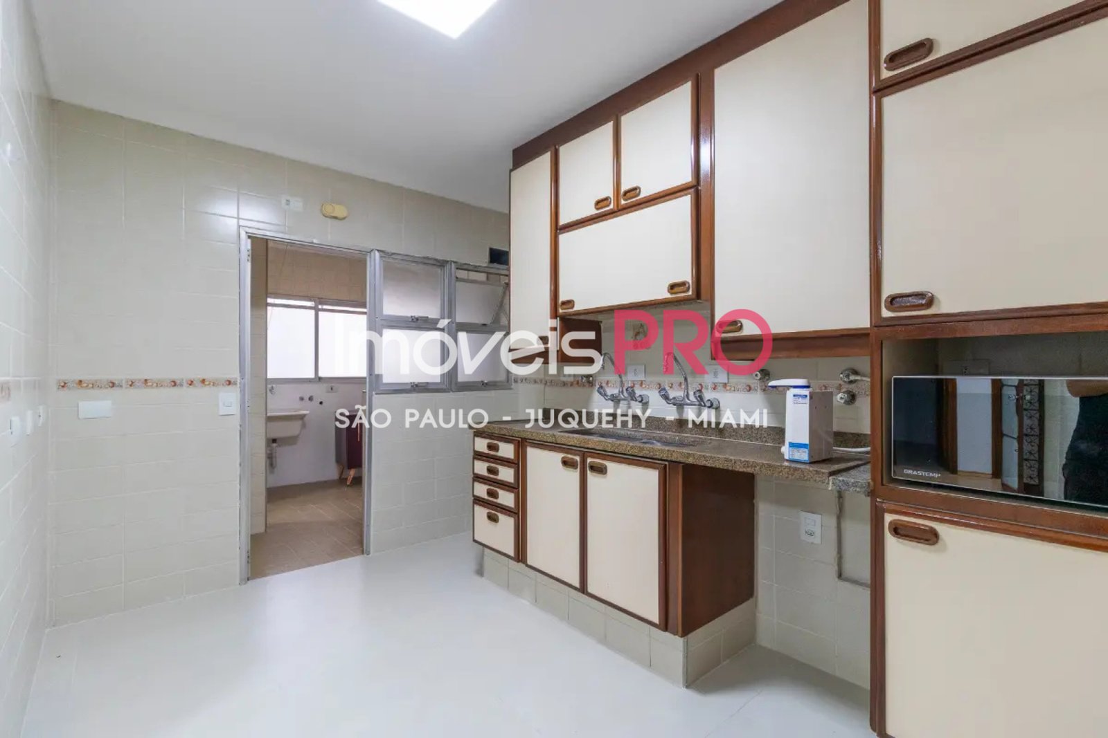 A cozinha é ampla e funcional, equipada com armários e integrada a uma copa que favorece refeições em família. A área de serviço é completa, com lavanderia, quarto e banheiro de empregada, oferecendo comodidade e privacidade. O apartamento dispõe de 2 vagas fixas de garagem.