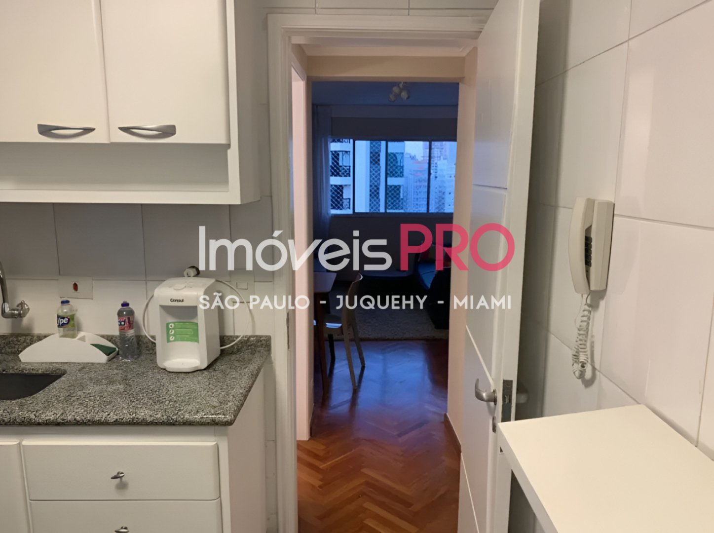 66m² om sala, lavabo, banheiro social com chuveiro a gás, dois quartos com armários embutidos. Há um terceiro ambiente que serve para home office. Conta também com área e banheiro de serviço e 1 vaga de garagem. Fica a 400m do metrô Moema e fora da rota do avião.