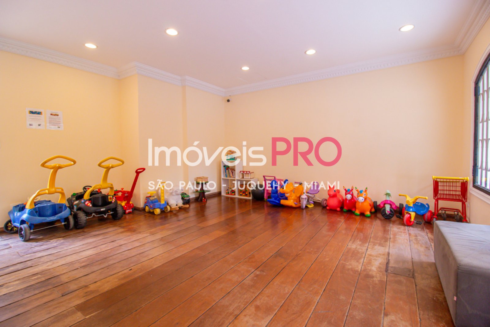 O condomínio conta com salão de festas e sala de brinquedos.