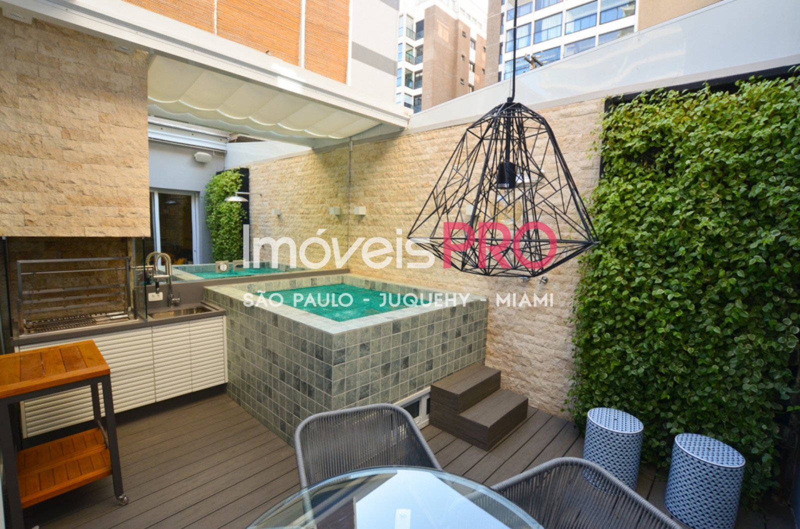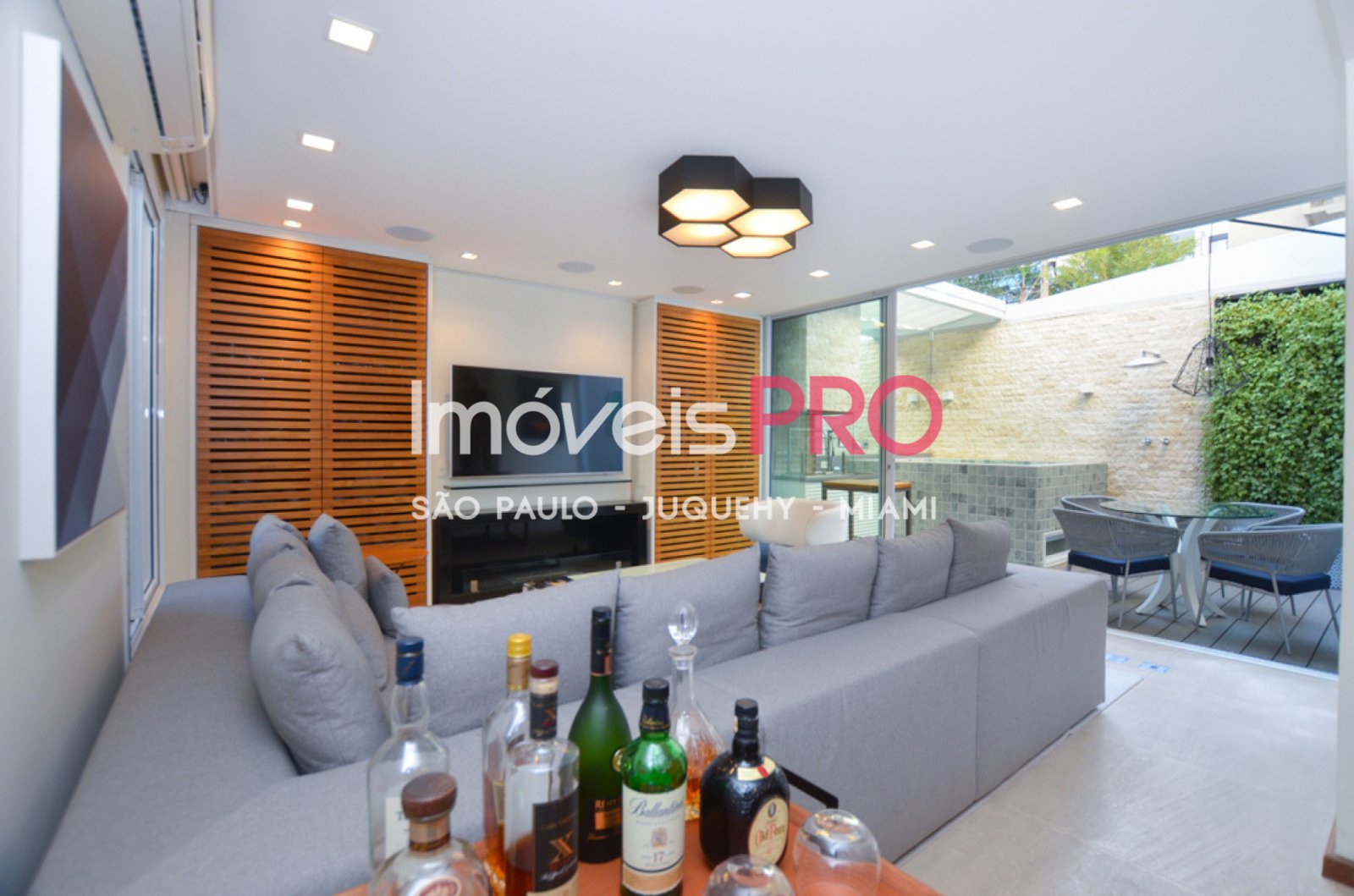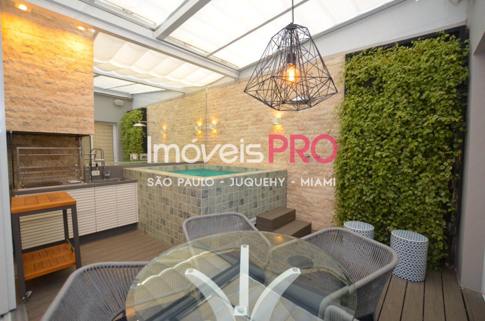 Todos os ambientes tem ar condicionado inverter quente e frio, teto retrátil na área externa, sistema de aspirador central embutido nas paredes, lareira à álcool gel.
