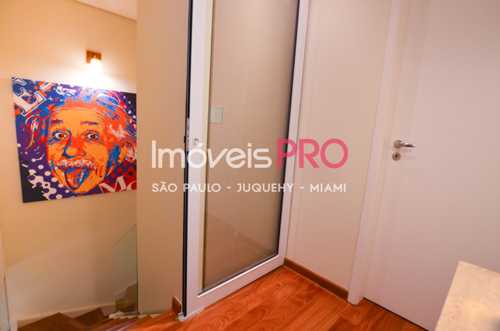 Suíte master, suíte do piso inferior, área externa, sala de jantar e sala de estar possuem caixas de som embutidas no teto com controle individualizado. A porta possui fechadura elétrica por meio de digital ou cartão de acesso.