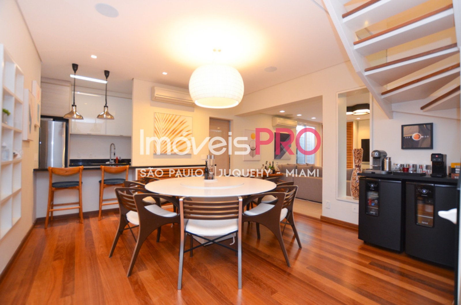 Iluminação, sistema de som, ar condicionado, persianas (12) e venezianas (2) motorizadas e as TVs do andar de baixo são controladas por automação diretamente pelo celular, por controle remoto ou ainda por meio de interruptores e key pads nas paredes.