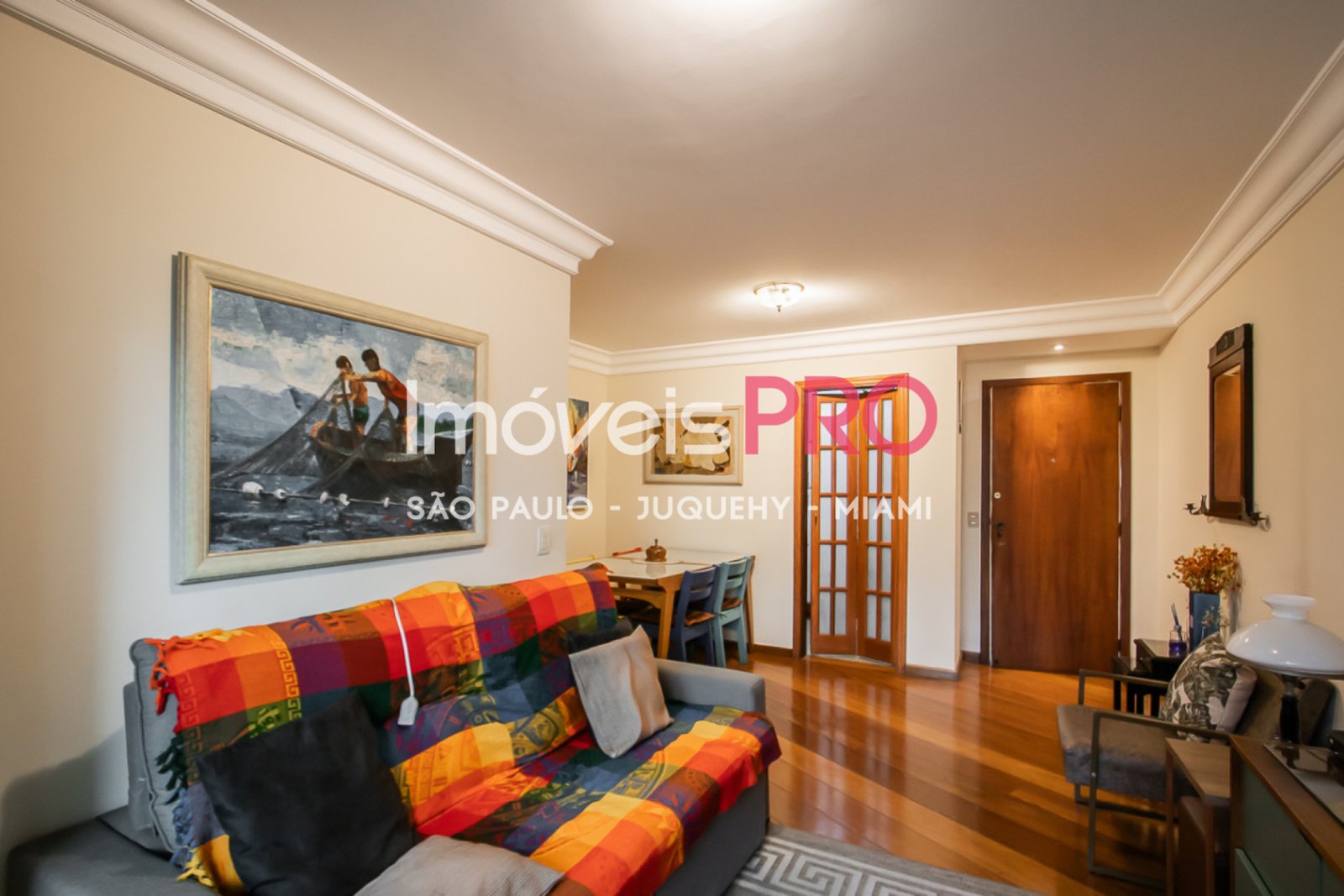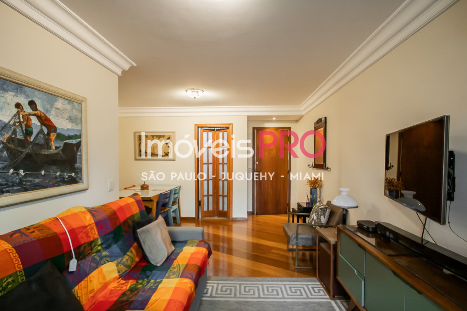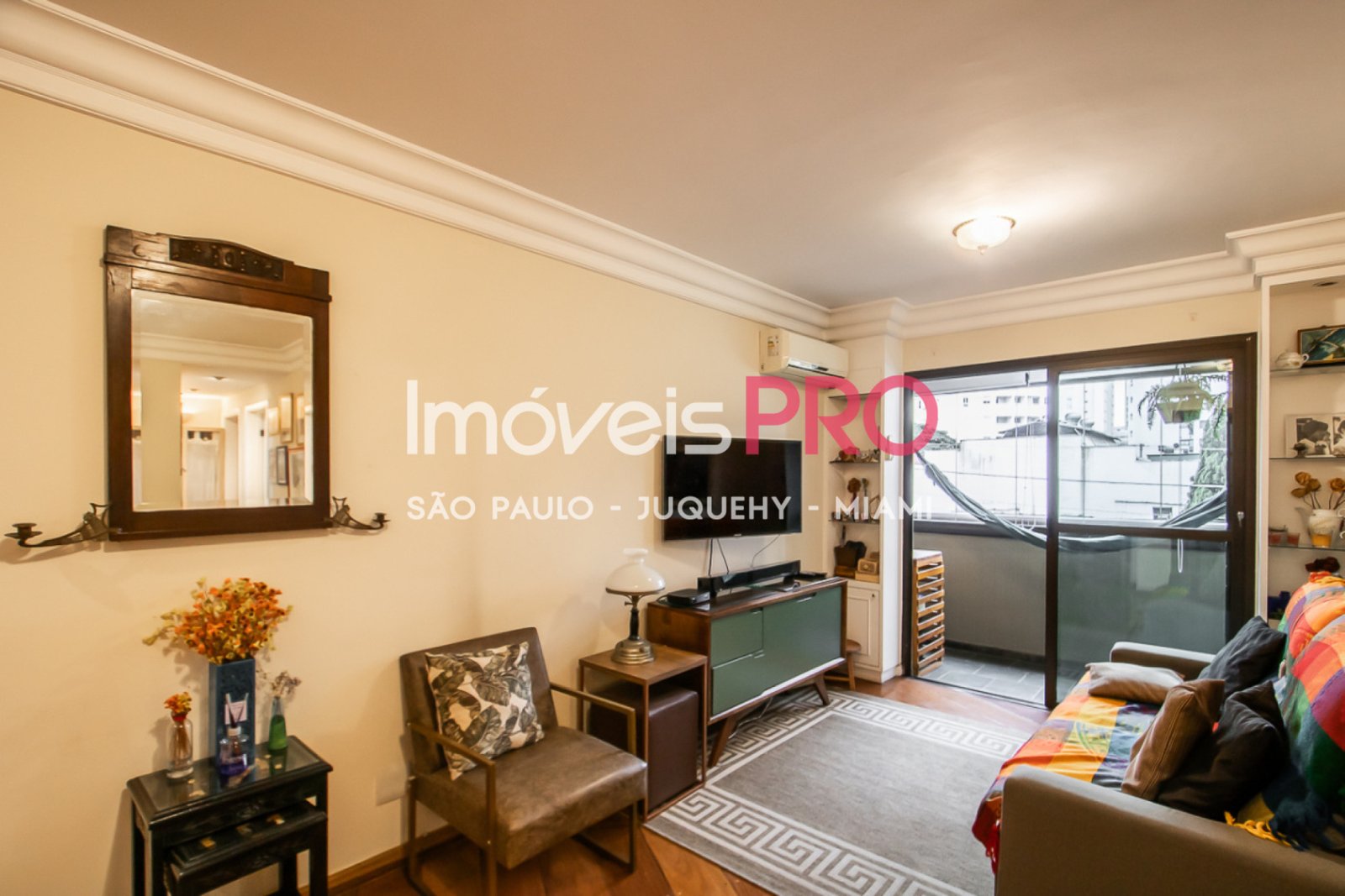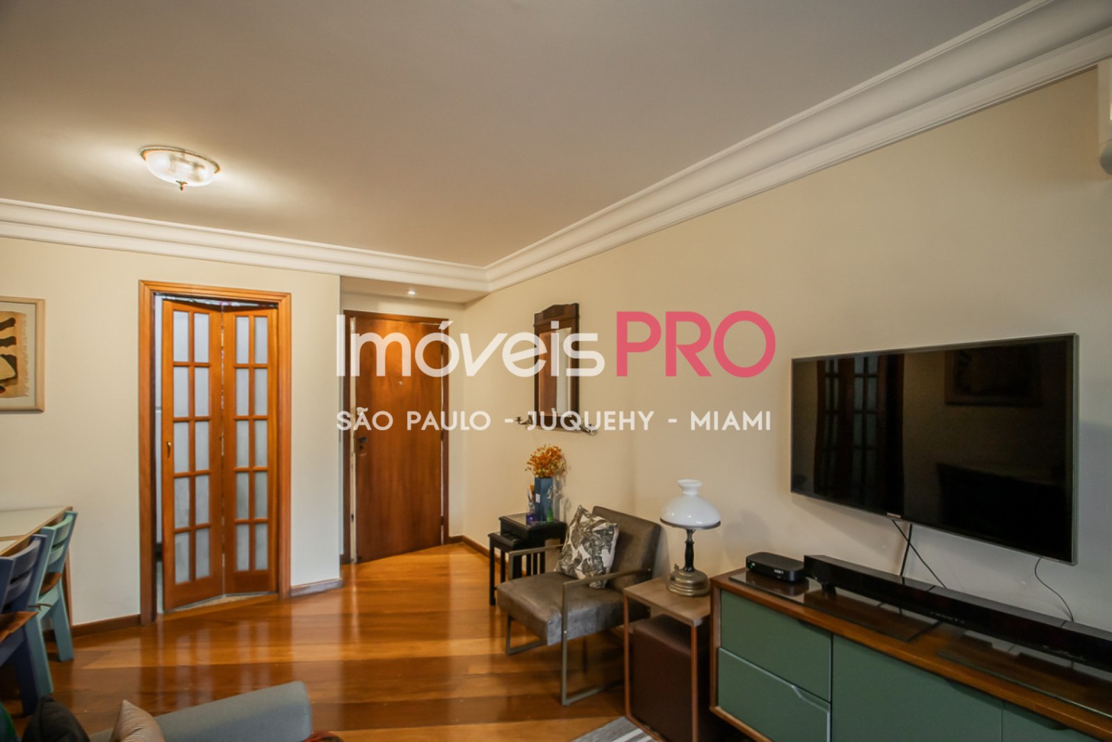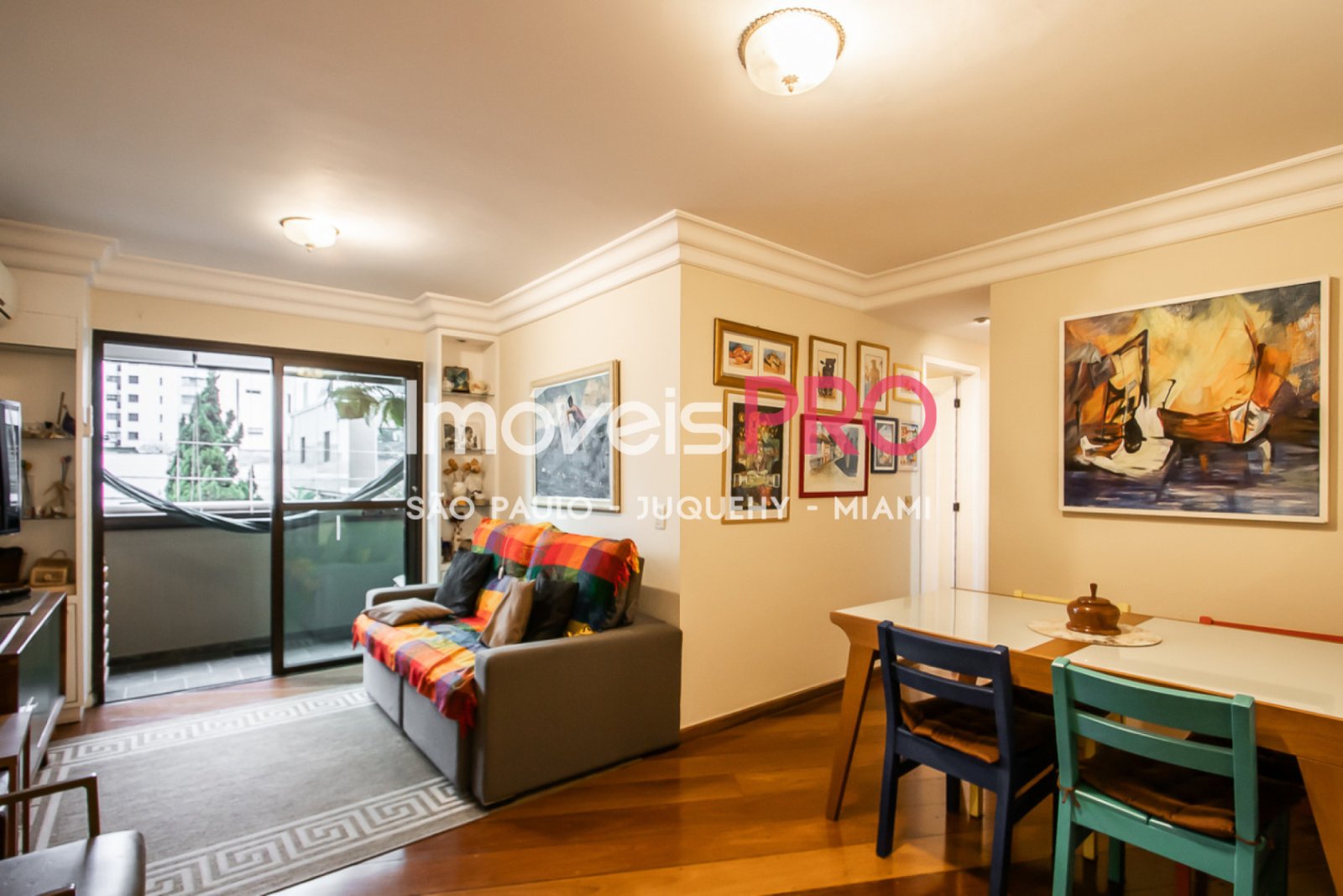 Living com varanda, piso em madeira,
