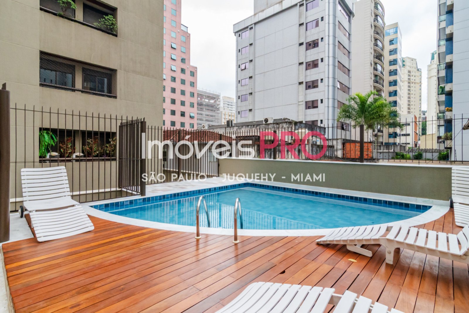 Condomínio com piscina, academia e sauna.